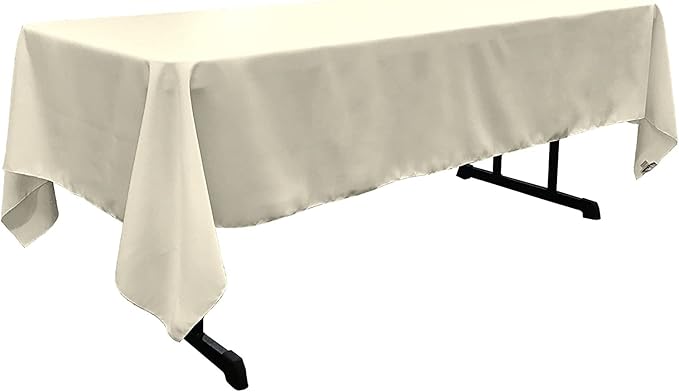 LA Linen Polyester Poplin Washable Rectangular Tablecloth, Stain and Wrinkle Resistant Table Cover 60x120, Fabric Table Cloth for Dinning, Kitchen, Party, Holiday 60 by 120-Inch, Ivory