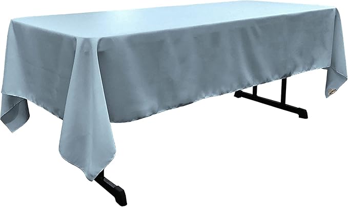 LA Linen Polyester Poplin Washable Rectangular Tablecloth, Stain and Wrinkle Resistant Table Cover 60x120, Fabric Table Cloth for Dinning, Kitchen, Party, Holiday 60 by 120-Inch, Blue Light