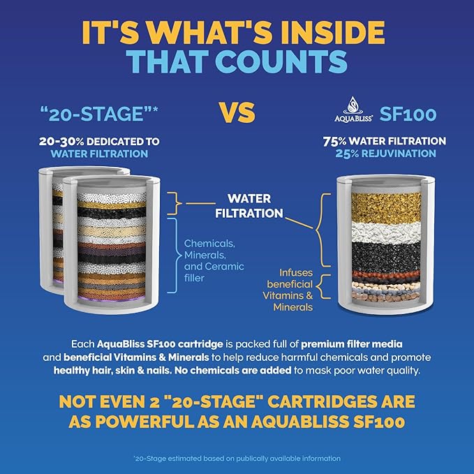- Look & Feel Your Best - Because we leverage the purest, premium, most potent materials, you’ll be getting the absolute best from every shower. And when you invest in the best, you look your best. So go ahead, click add to cart. Replace your AquaBliss SF100 with the upgraded power of this SFC100 shower filter head replacement cartridge, and love your results.