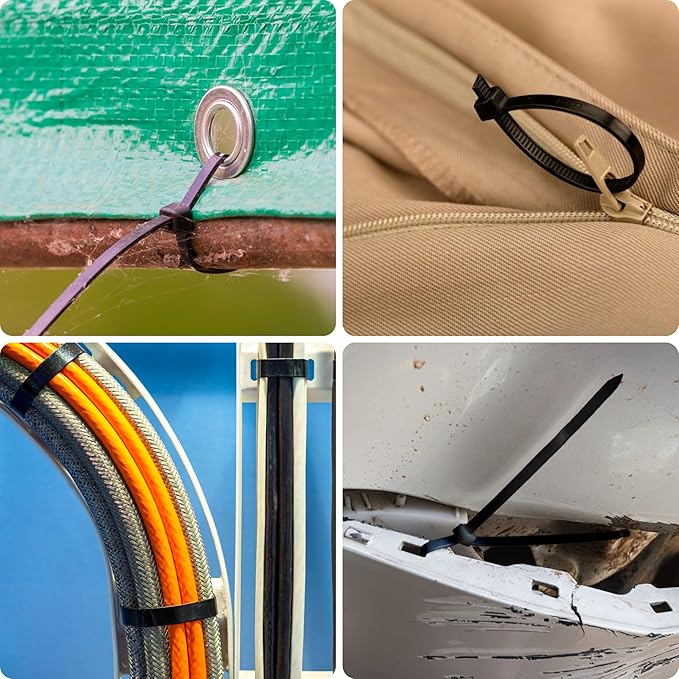 - Weatherproof: Built for outdoor use, these zip ties resist extreme weather, including rain, snow, UV rays, and heat, ensuring long-lasting performance for all-weather applications