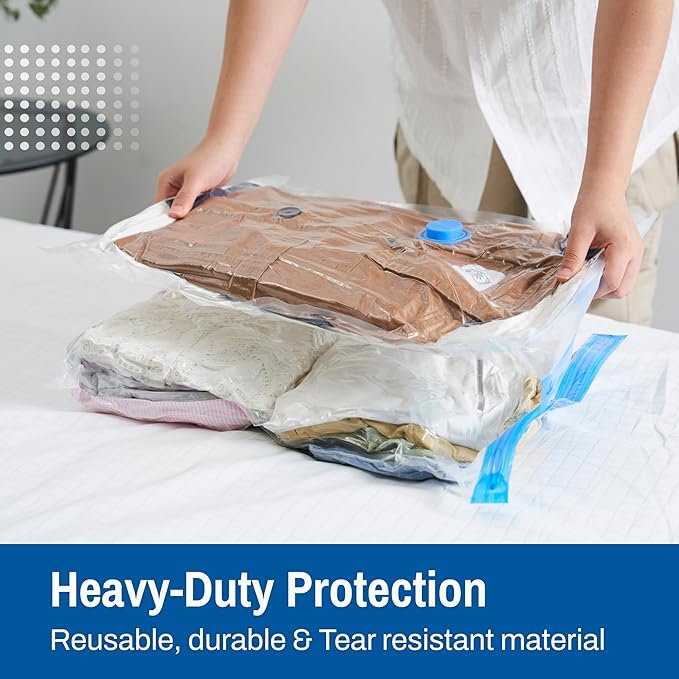 - Heavy-Duty & Reusable: Crafted from thick, durable PA+PE material, these vacuum seal storage bags are rip-resistant and designed for multiple uses—great for moving supplies or long-term bedding storage.