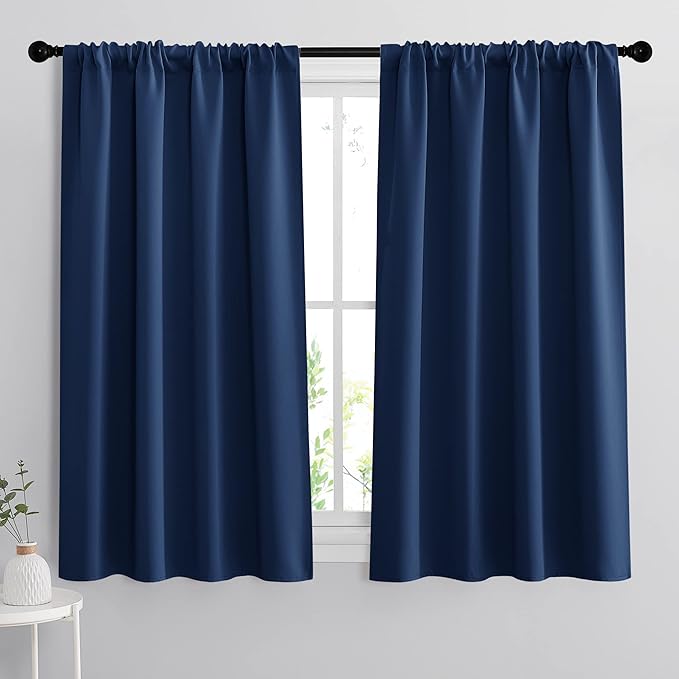 RYB HOME Bedroom Curtains Blackout Curtain Shades Blind for Living Room Home Office Family Room Cafe, 42 x 54 inch per Panel, Navy Blue, Set of 2
