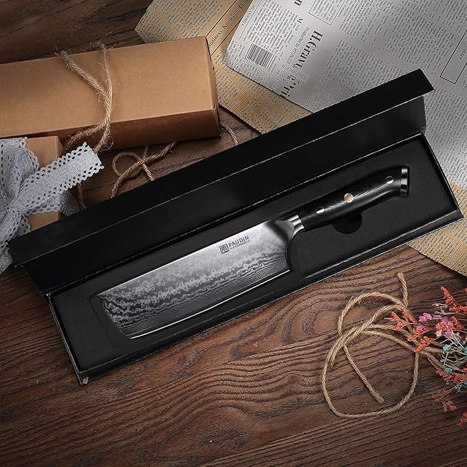 - Excellent Service and Gift Box: This chef's knife comes with an exquisite gift box, a good gift for friends and family. If you have any questions about this 7 inch cleaver knife, please feel free to contact us, we're glad to answer you.