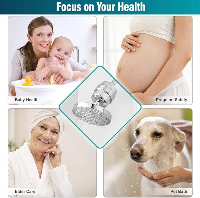 - Rejuvenate your body: Water through the filter head rejuvenates and protects you from harmful substances. Increased water activity helps you release the itching sensation of dry skin, reduces scalp itching, dry hair and eczema, and improves skin's immunity