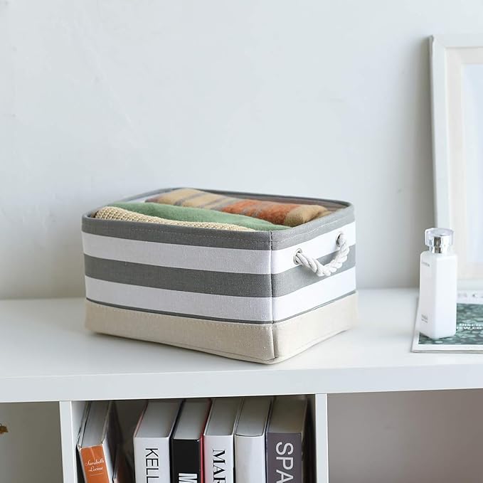 TheWarmHome Storage Basket Fabric Basket with Handles Dog Toy Basket Cloth Storage Bin Shelf Basket Decorative Storage Basket Shoe Basket Gift Basket(Grey&White Stripes-1 Pack,15.7L×11.8W×8.3H)
