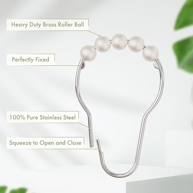 - Free gliding action - No snagging; no effort; no hassle. These white shower hooks feature specially engineered spherical balls to reduce friction and allow effortless gliding across the rod with virtually no effort at all.