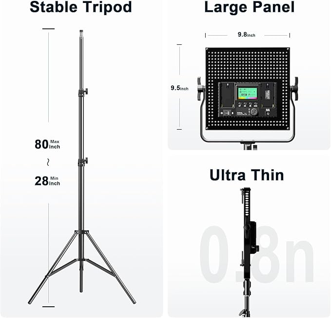 - 【LIGHTWEIGHT & PORTABLE】The LED Lighting Kit is lightweight and portable. Come with a durable large carry bag. Easy to carry this led lighting kit when shooting/filming/broadcasting anywhere. Meet all your photographic need, such as still-life shooting, portrait, wedding/children photography, video shooting, VLOG, interview, etc