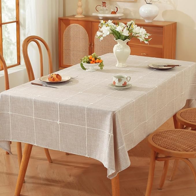 TruDelve Gray Cloth Tablecloths for 6 Foot Rectangle Tables Rustic Cotton Fabric Tablecloth for Kitchen Dining Table Cover(Linen,86"x52",Rectangular)