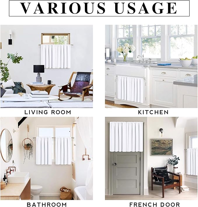 - HOME DECOR - Small Curtain Tiers suit most of the places like bedroom, bathroom, kitchen, basement, office, RV window...Add clean lines and decorate your window with a classic look.