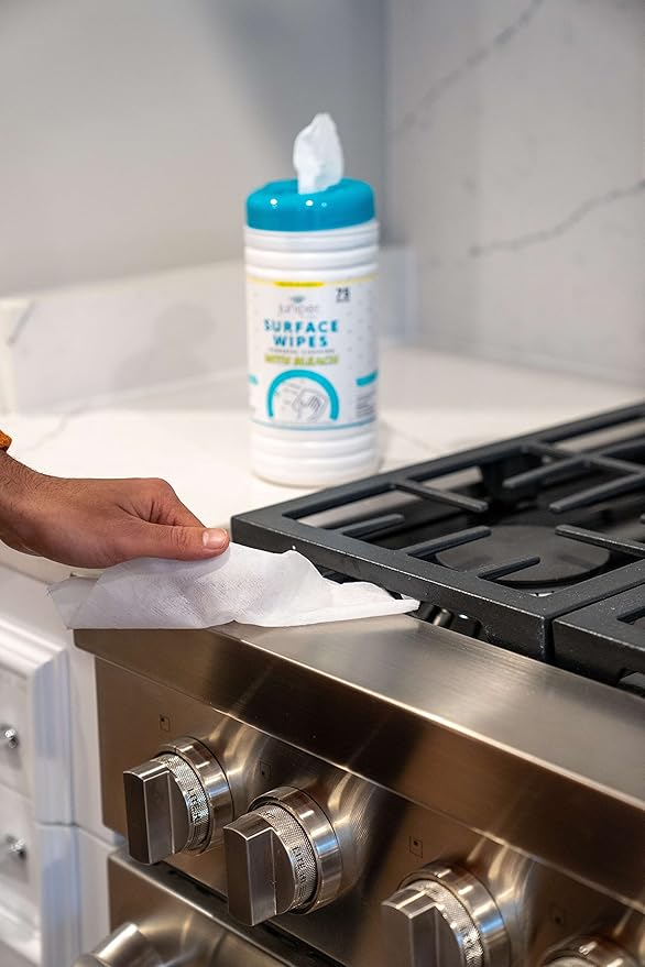 - 【 EFFECTIVE SURFACE CLEANING WIPES】 All purpose cleaner wipes are tough on grease and bathroom soils and cut through grime on a variety of hard surfaces throughout your home including wood, granite, stainless steel and more., Surface cleaning wipes with bleach are perfect for in my kitchen and in my bathrooms. In the bathrooms you can take one wipe and quickly wipe areas down throughout the day and In the kitchen, you can use these for wipe down my counter tops.