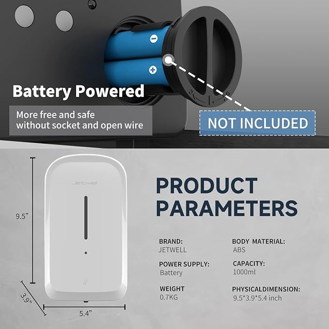 - Simple Setup: This dispenser requires 4 AA batteries, which can typically last for three months with regular use
