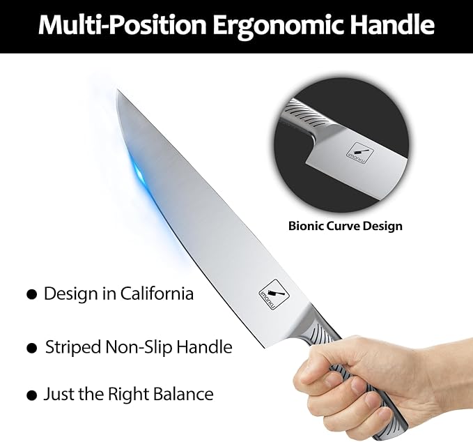 - Most Comfortable Kitchen Knives: Full tang ergonomic handle provide a comfortable and flexible grip. Increased handle weight improving balance. The design of the handle uses special technology to form ridges that not only increase aesthetics but also offer better grip