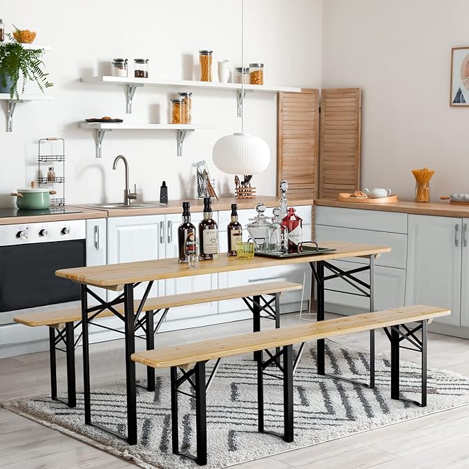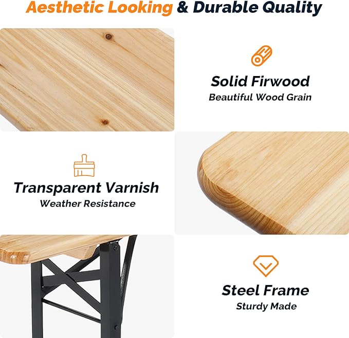 - Durable Construction - The tops of beer table and bench are made of wood which is smooth and comfortable. It is easy to clean and suitable for outdoor use.