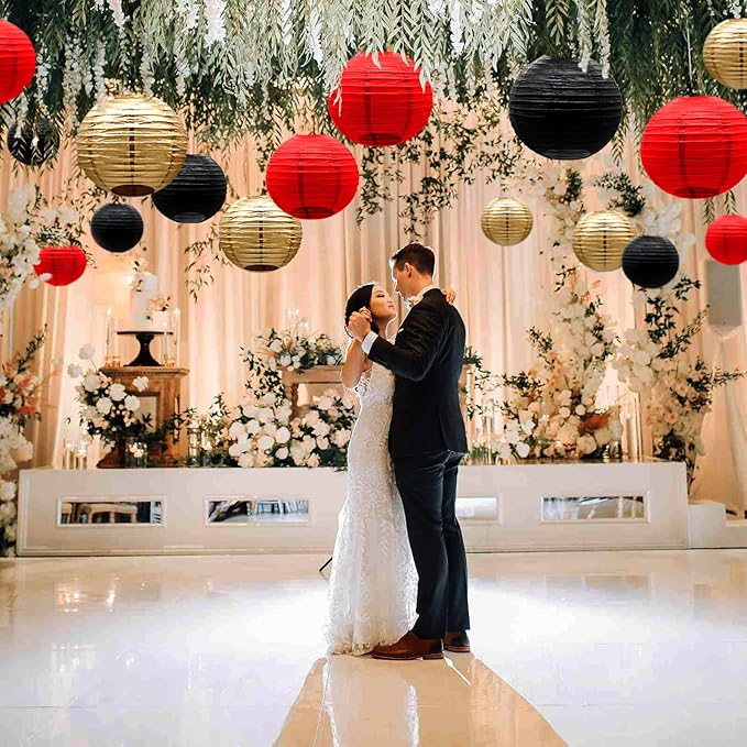 - RED BLACK GOLD THEME PARTY DECOR - Paper lanterns are suitable for gender reveal party, Mickey Mouse party, birthday party for adults, ladybug party, outdoor BBQ, easter, playground decoration, bridal shower, wedding, bachelorette party, engagement, retirement party, room decoration, garden decoration, children's DIY activities, graduation party and other theme parties. You can mix and match the lanterns as you like