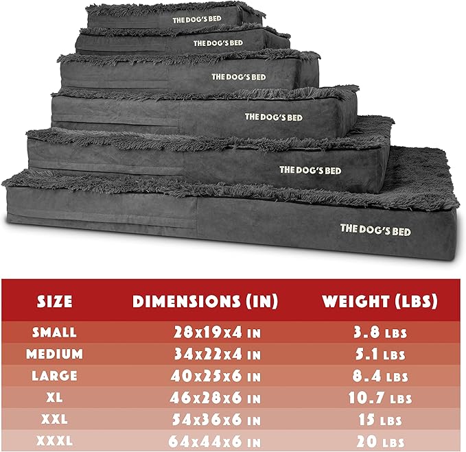- Large Grey Fur 40x25x6” waterproof orthopedic dog bed. Solid 2” high density, orthopedic memory foam over a solid 4” base of high stability support foam with covers designed so that your bed fits your home decor seamlessly and your dog can stay close to your family