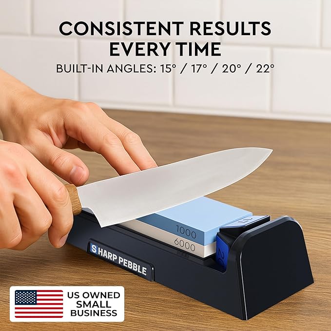 Sharp Pebble Knife Sharpening Stone Kit-Grit 1000/6000 Wet Stone-Built In Angle Guides 15/17/20/22 Degrees- Professional Whetstone Knife Sharpener Stone Set with Plastic Base