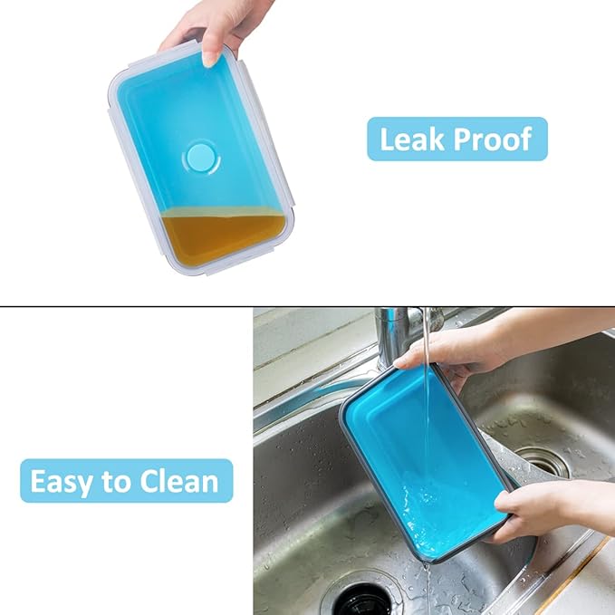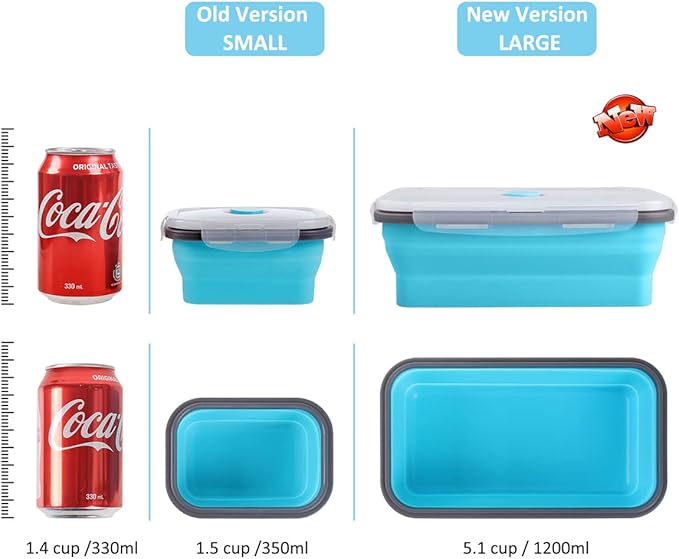 - 【LARGE SIZE】Unfolded size: 7.7" x 4.5" x 2.8", 40.5oz/1200ml. This large collapsible food storage containers with lids are great for adult or family. Set of 4 pack.