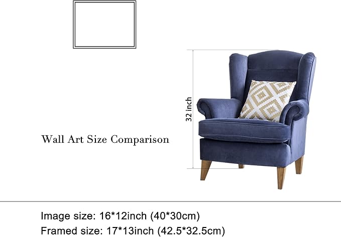 - Art image Size:(W) 16 in x (H) 12 in. Finished Framed Size: (W)17 in x (H) 13 in,1.3inch thick.