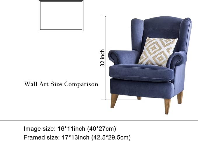 - Art image Size:(W) 16 in x (H) 10.8 in. Finished Framed Size: (W)17 in x (H) 11 in,1.3inch thick.