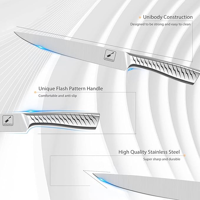- 【Perfect Kitchen Knife Set Gift】imarku knife set come with a beautiful and elegent gift box. Varity type of knife can be use all different need in the kitchen to prepare food. So this is perfect for all ages and life time pirod gift, such as families, friends for new house, new apartment warming, wedding, Christmas, anniversary gift. Provide quality warranty and 100% satisfaction or money back guarantee, contact 24/7 support service online if you have any need with your purchase.