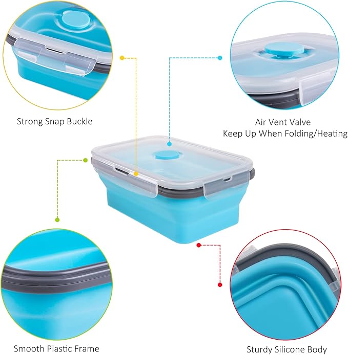 - Material : Silicone Containers, Plastic Lids