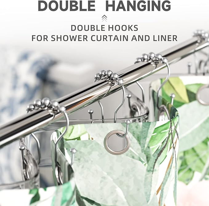- Premium metal & finish: These double shower curtain hooks are made of premium selected metal material, which is strong and rust-proof. Shower curtain hooks rust proof with beautiful finish can perfectly match the bathroom style