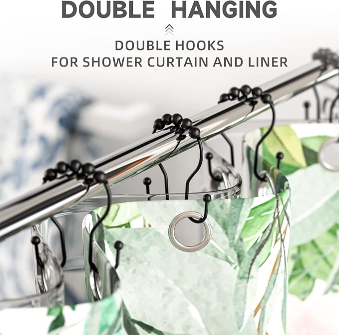 - Double shower hooks for hanging: These shower curtain double hooks have both sides to hang items and keep them balanced. The shower curtain and shower curtain liner can be hung together at the same time and will not fall off easily
