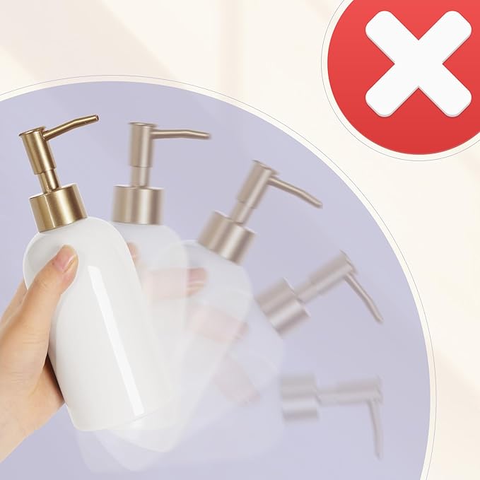 - Versatile Liquid Compatibility: This ceramic soap dispenser is designed for thicker liquids like lotion, hand sanitizer, shampoo, shower gel, and even laundry detergent. (Note: Avoid vigorous shaking during use to prevent spills.)