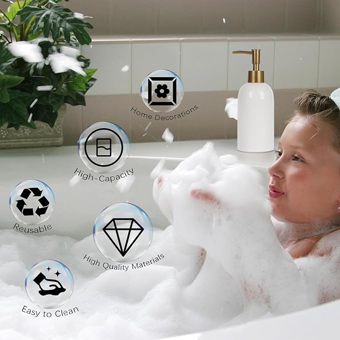 - Premium & Lightweight Ceramic: Crafted from upgraded ceramic material, this bathroom soap dispenser is lighter than traditional ceramics while maintaining durability, making it easy to move or refill.