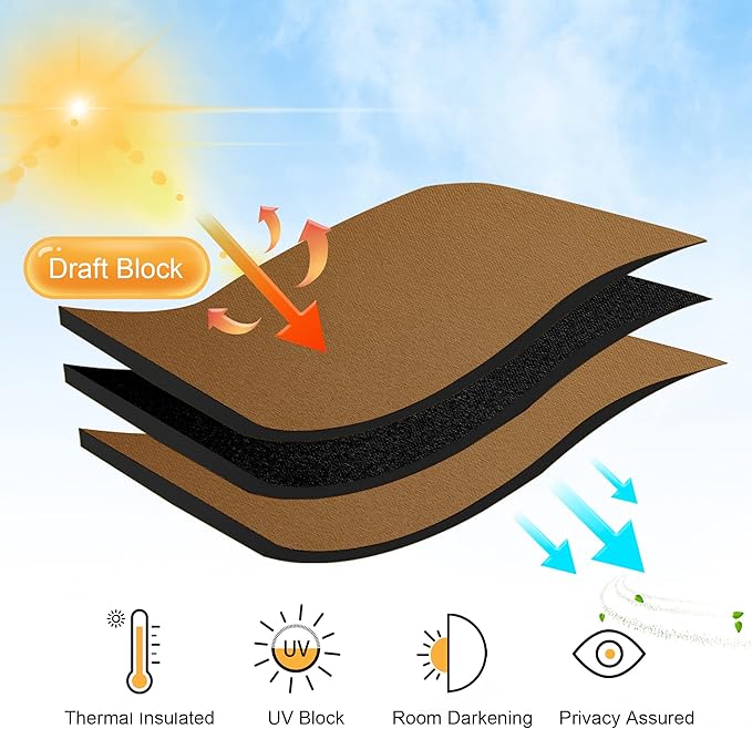 - LIGHT BLOCKING - Curtains block 85-95% sunlight and UV rays (Dark color works better) for maximum privacy and undisturbed sleep. Thermal property of the blackout curtains ensure that the room temperature is regulated. Protect your indoor furniture from directly exposing to the sun.