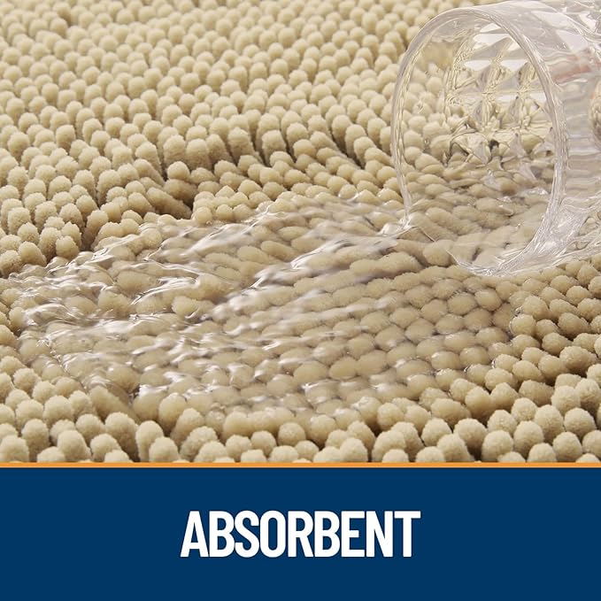 OLANLY Dog Door Mat for Muddy Paws 36x24, Absorbs Moisture and Dirt, Absorbent Non-Slip Washable Doormat, Quick Dry Chenille Mud Mat for Dogs, Entry Indoor Entryway Carpet for Inside Floor, Beige