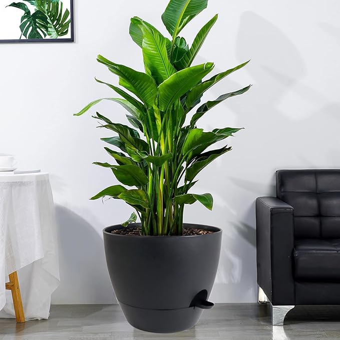 12 inch Large Self Watering Pots, Plastic Planters with 60oZ Removable Deep Reservoir and Multi Mesh Drainage Holes for Indoor Outdoor Garden Plants and Flowers, Black