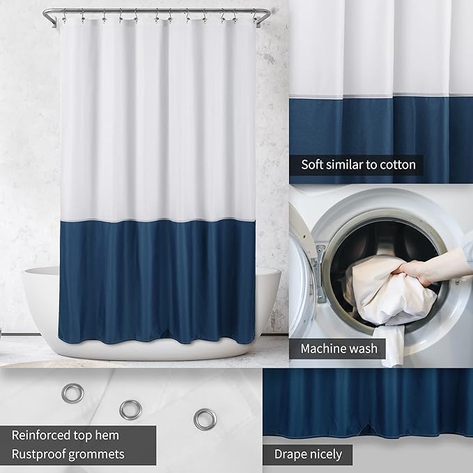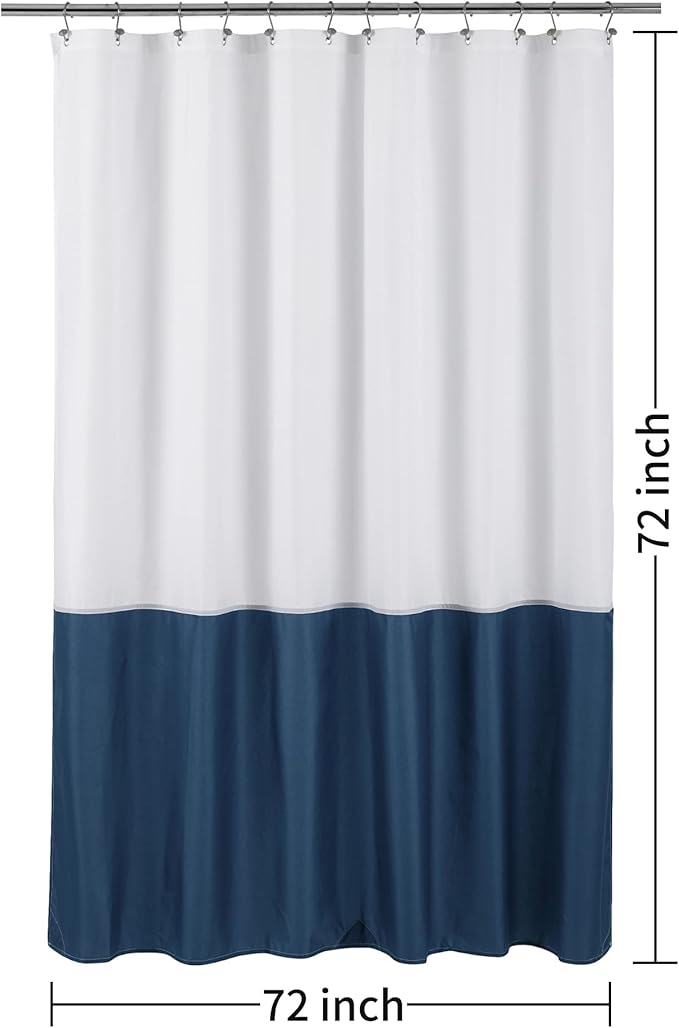 ALYVIA SPRING Waterproof Fabric Shower Curtain Liner - Soft & Light-Weight Cloth Shower Liner, 3 Bottom Magnets, Hotel Quality & Machine Washable - Standard Size 72x72, White and Navy