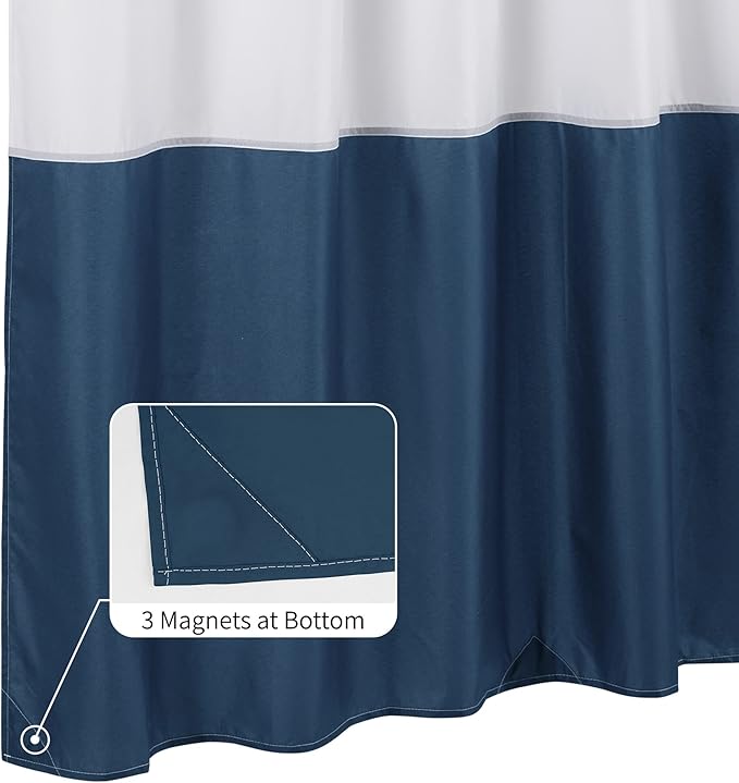 - MAGNET-WEIGHTED HEM: 3 magnets at the bottom of the shower curtain to add extra weight, helps keep this fabric shower curtain liner in place and reduce billowing
