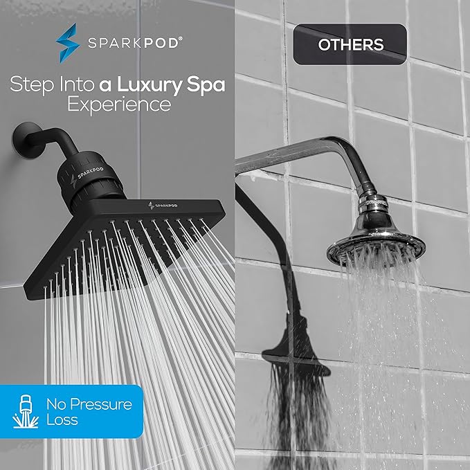 - UPGRADED FILTRATION: SparkPod's new filtered shower head contains an enhanced version of high-grade Activated Carbon, Vitamin C and Mineral/Ceramic Balls, which filters twice more Heavy Metals, Chlorine, and Chloramine. Filtered water for well being.