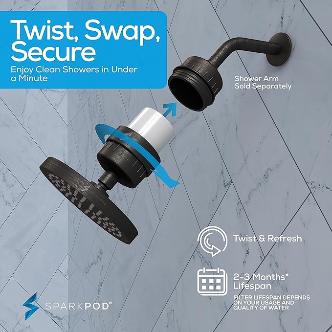 - REPLACEABLE CARTRIDGES: SparkPod’s new upgraded formula filters water to help with dry skin, rough hair and itchy skin. Enjoy 2-3 Months of filtered soft water per replacement Cartridge.