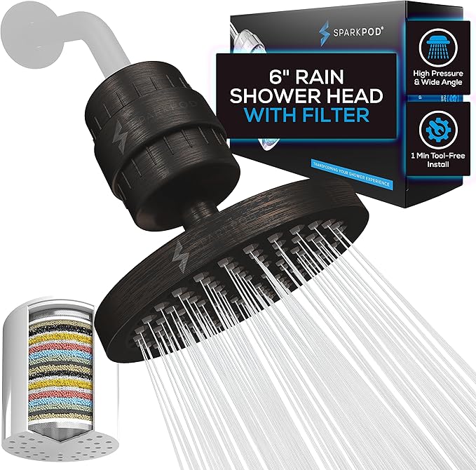 SparkPod Luxury Filtered Shower Head Set 23 Stage Shower Filter - Reduces Chlorine and Heavy Metals - High Pressure Showerhead Filter (6" Round, Vintage Oil Rubbed Bronze)