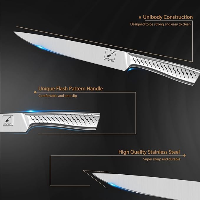 - 【Perfect Kitchen Knife Set Gift】imarku knife set come with a beautiful and elegent gift box. Varity type of knife can be use all different need in the kitchen to prepare food. So this is perfect for all ages and life time pirod gift, such as families, friends for new house, new apartment warming, wedding, Christmas, anniversary gift. Provide quality warranty and 100% satisfaction or money back guarantee, contact 24/7 support service online if you have any need with your purchase.