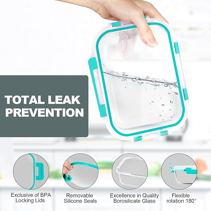 - GLASS MATERIAL EXCELLENCE IN QUALITY: Glass meal prep containers are made of high quality borosilicate glass, for oven, microwave, dishwasher and freezer. Stronger than cheaper glass food storage containers, food can be stored in glass containers directly after cooking. The containers are versatile to meet your everyday food storage needs, perfect for prep meals at home or whatever you need for the occasion