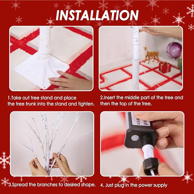 - 2024 New Upgraded Birch Tree: 4FT tall lighted birch tree is equipped with 48 bright LED lights, dotted throughout the small and large branches. The adapter is UL certified to ensure safe. IP44 waterproof design, sturdy and stable square base for indoor and outdoor use, creating a romantic atmosphere for the family