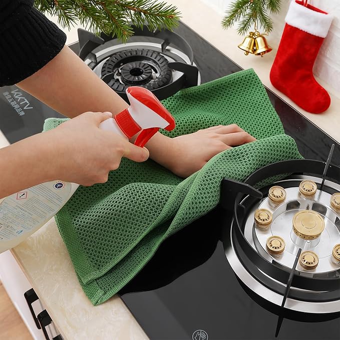 Homaxy 100% Cotton Waffle Weave Kitchen Dish Towels, Ultra Soft Absorbent Quick Drying Cleaning Towel, 13 x 28 Inches, 6-Pack, Grass Green