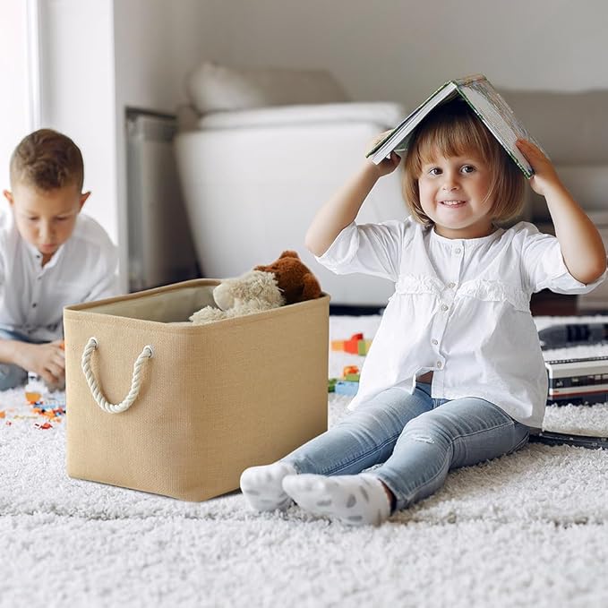 TheWarmHome Organization and Storage Basket for Organizing - 3 Pack 16x12x12 inch Cube Fabric Storage Cubes, Storage Bin for Shelves Gift Closet Organizer Cloth Toy (Beige)