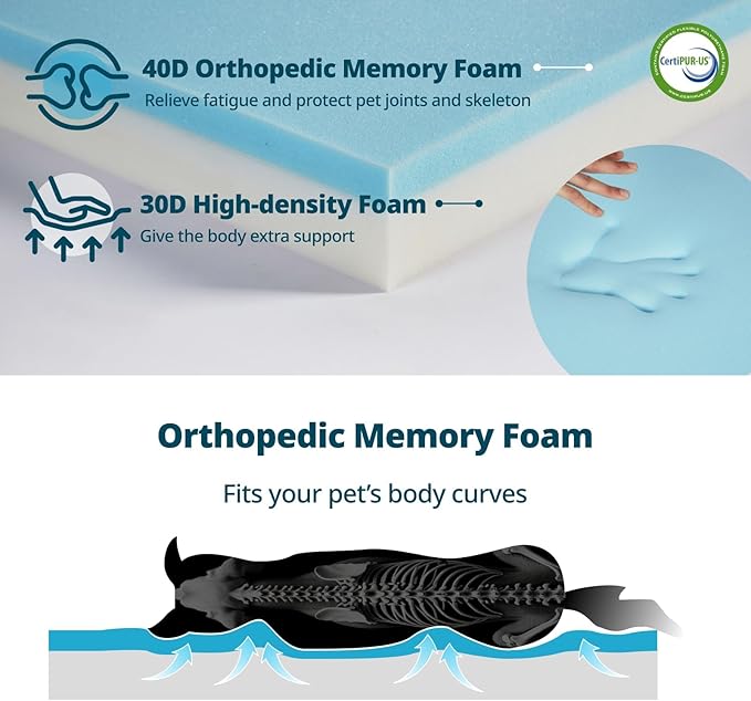 - Orthopedic Memory Foam: Our xxl dog bed uses a combination of 40D memory foam and 30D high-density foam. Evenly distributes weight and conforms to your pet's body, reducing pet stress and protecting joints.