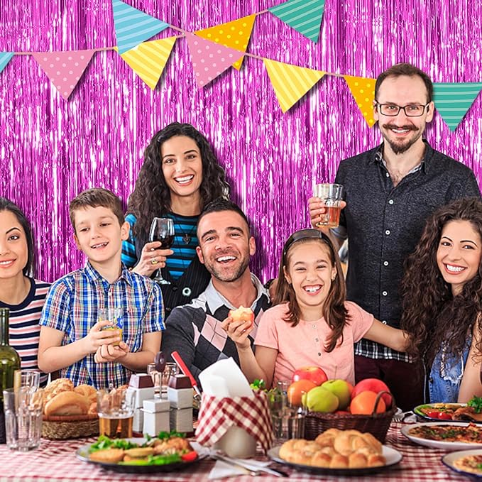3 Pack Hot Pink Backdrop Curtain Birthday Party Decorations Tinsel Streamers Foil Fringe Backdrop New Years Bachelorette Graduation Engagement Party Decorations Hot Pink Photo Booth Backdrop