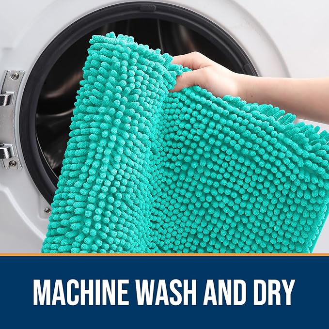 OLANLY Dog Door Mat for Muddy Paws 30x20, Absorbs Moisture and Dirt, Absorbent Non-Slip Washable Doormat, Quick Dry Chenille Mud Mat for Dogs, Entry Indoor Entryway Carpet for Inside Floor, Teal
