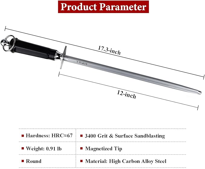 - [Surface Sandblasting Process]: We have additional sandblasting on the rod, which greatly enhances the friction of the sharpening rod, and the 12 inches round rod has a longer effective distance & contact area than the 10 inches round rod, which will help you correct your blade more effectively;