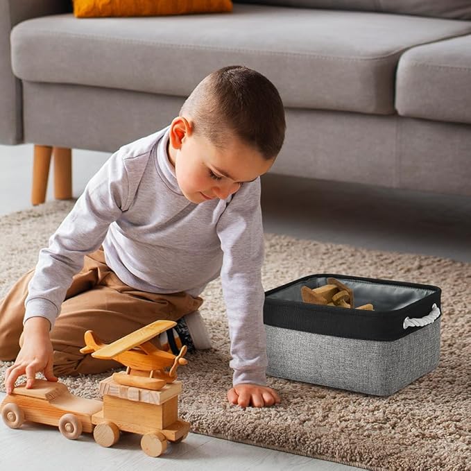 TheWarmHome Storage Basket for Organizing - 1 Pack 14x10x6.7 inch Collapsible Storage Bins for Shelves, Dog Toy Bin for Closet Organizer laundry Gift Cloth Nursery (Grey & Black)