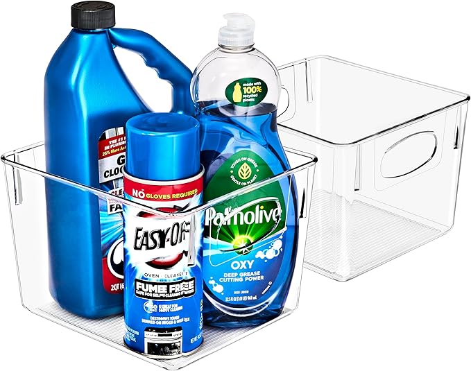 - Clear Cleaning Supplies Organizer: The Sorbus Clear Bins for Organizing make it convenient and easy to organize household essentials - Perfect for storing cleaning supplies under the sink - Store and organize items in the kitchen, bathroom, pantry, office closet, and more