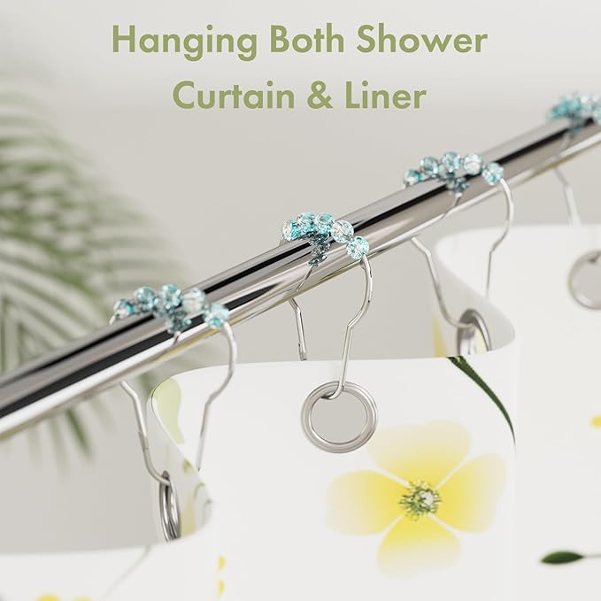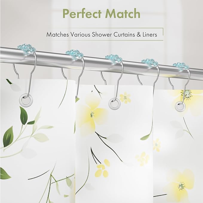 Amazer Shower Curtain Rings, Decorative Shower Curtain Hooks, Shower Curtain Hooks, Rustproof Stainless Steel Shower Hooks for Bathroom Shower Curtain-Set of 12, Ice Blue