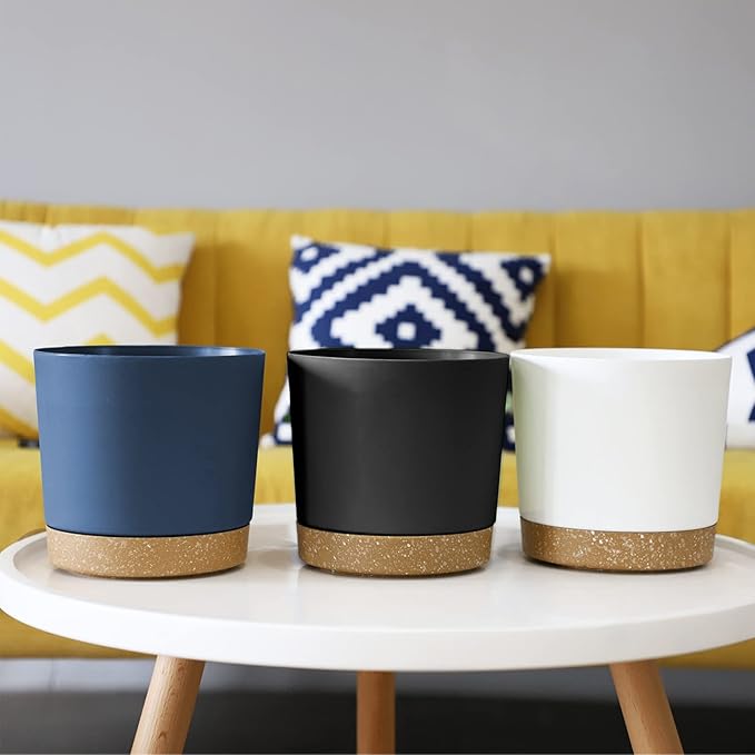 - 3 Packs Modern Decorative Plastic Plant Pots - Dimension: 8 in Diameter x 7.5 in Height, plants not included.